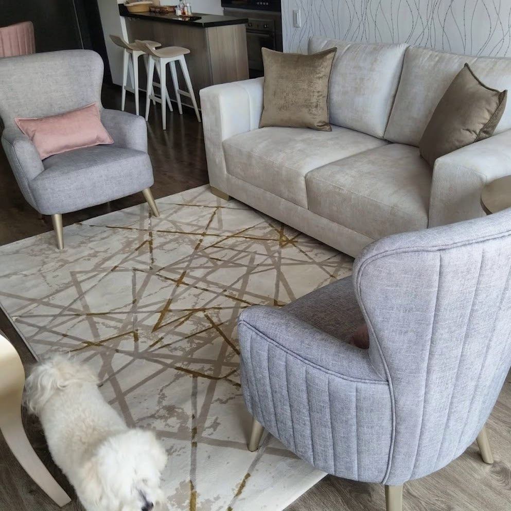 Alfombra importada de Turquía, colección Rumelli. Fondo beige claro con realces en tonos de marrón, beige y dorado. Diseño clásico que combina con muebles tradicionales y modernos. Solicita el video por nuestro WhatsApp.
